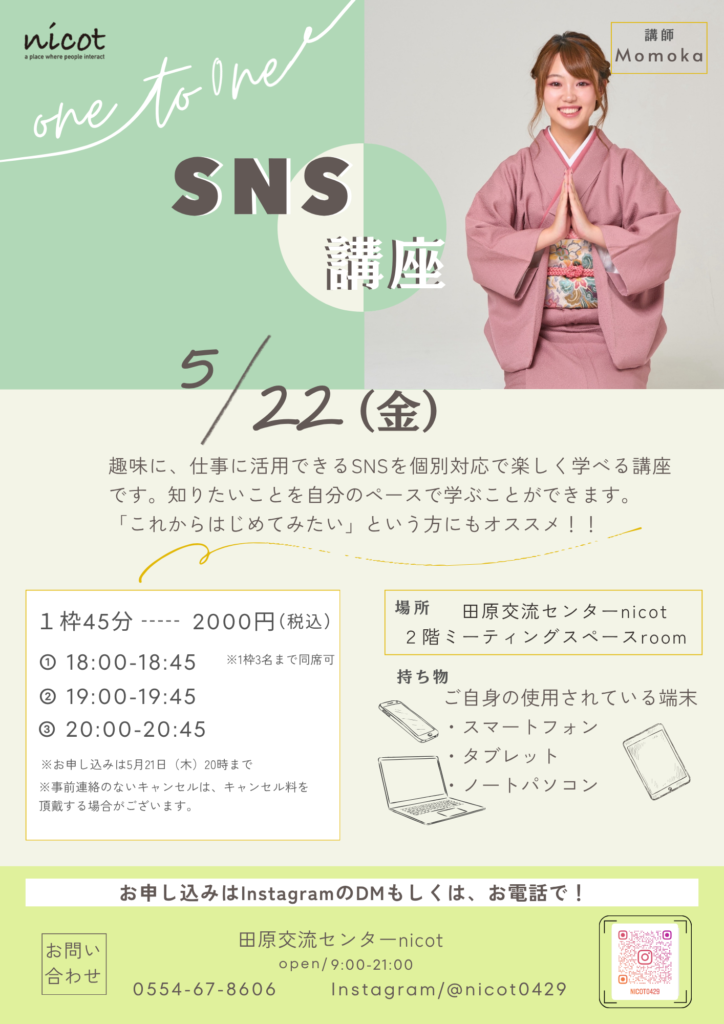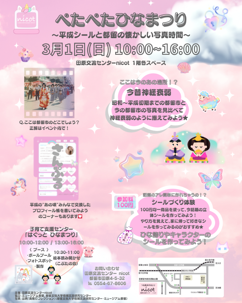 田原交流センター「nicot」は、子育て支援やイベント・コワーキングスペース、カフェを通して、 まちの人々が笑顔でつながる場です。