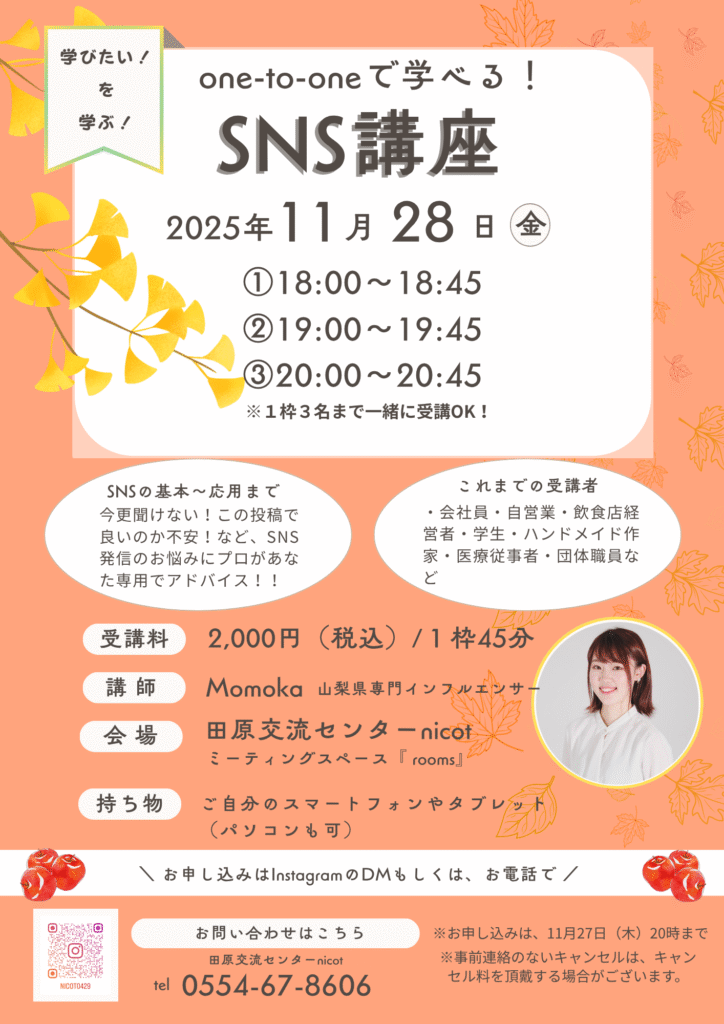 都留市の新しい交流拠点として、「多世代交流」「地域交流」を目的としているnicot
