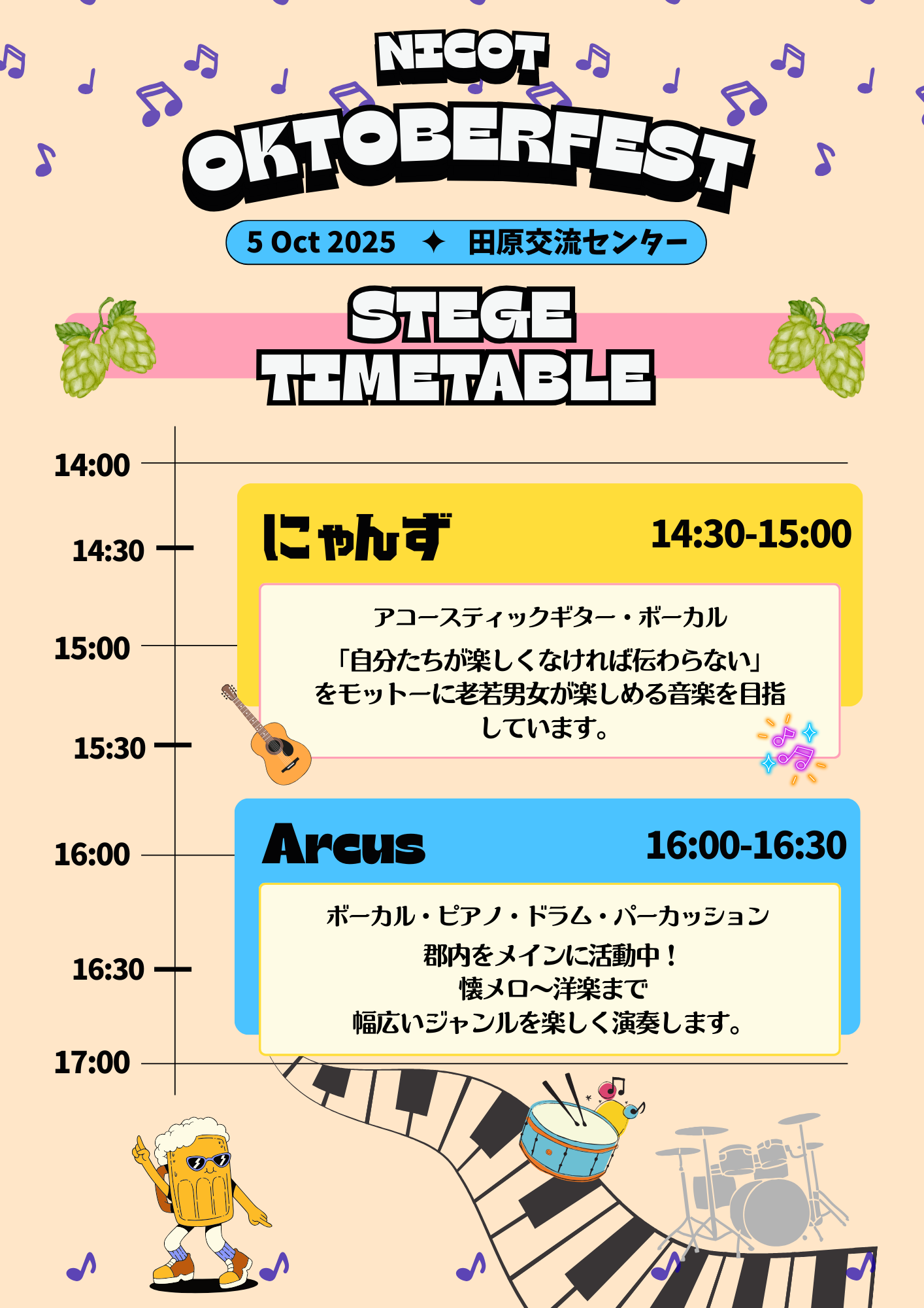 ✏️オクトーバーフェストとは、ドイツ発祥のビール祭りで、本場ではビールとソーセージと音楽を楽しむ陽気なイベントです。そこでニコットでは、ビールとソーセージだけじゃない!!キッチンカーグルメと音楽を楽しむ陽気なイベントにしようと思います!